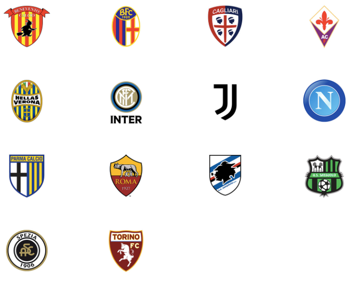 fr.v. Benevento, Bologna, Cagliari, Fiorentina, Hellas Verona, Inter Milan, Juventus, Napoli, Parma, Roma, Sampdoria, Sassuolo, Spezia, Torino