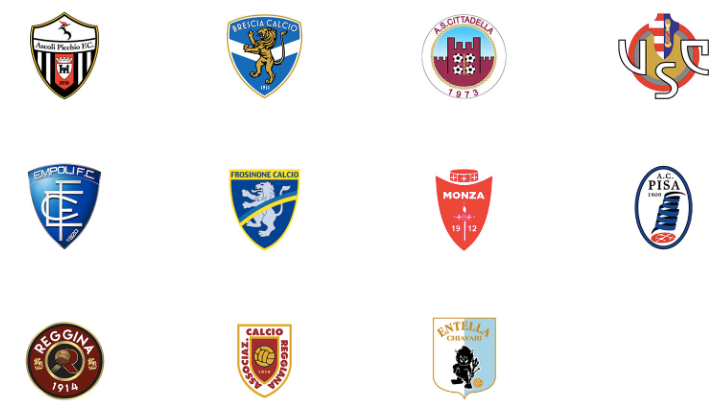 fr.v. Ascoli, Brescia, Cittadella, Cremonese, Empoli, Frosinone, Monza, Pisa, Reggina, Reggiana, Virtus Entella